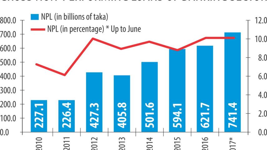 The amount of NPL climbed to an astounding Tk 70,400 crore ($8.8 billion) in fiscal 2016-17, which is 90 percent of Bangladesh's actual annual development spending for the year.
