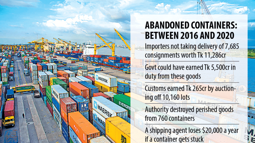 According to Chattogram Custom House and Chattogram Port data, importers failed to take delivery of consignments worth a total of Tk 11,286 crore between July 2016 and December 2020.