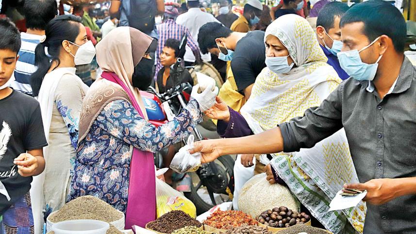 Shoppers thronged grocery stores, super shops and kitchen markets across Dhaka yesterday following the announcement of a fresh nationwide lockdown to curb the spread of Covid-19.