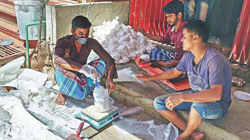 Bleaching powder is needed every day to disinfect various objects in clinics, said Ariful Islam, an employee of a private clinic, who came to Khatunganj to buy bleaching powder.