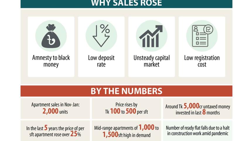 FR Khan, managing director at the Building Technology & Ideas (bti), said the demand for flats had increased since September for the government amnesty as well as the low rate on bank deposits.