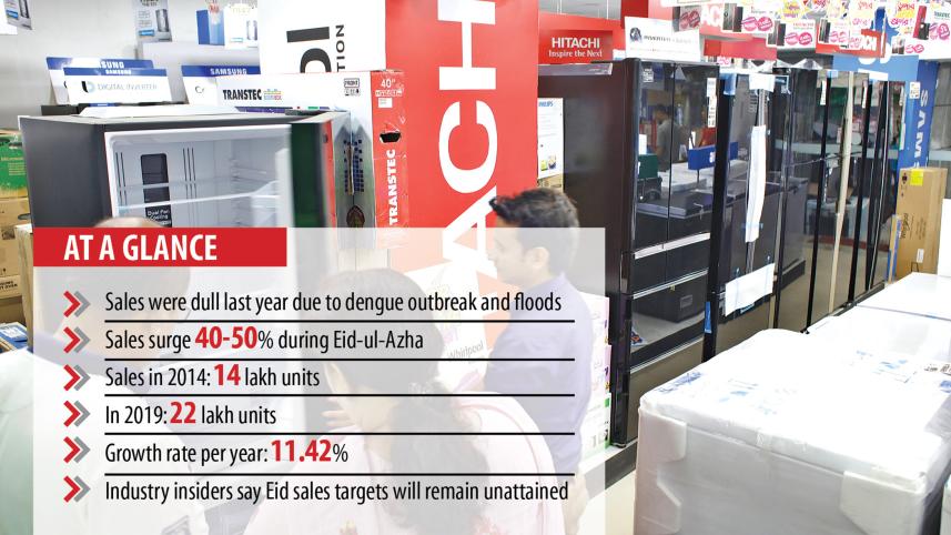 Vision Electronics, a sister concern of Pran-RFL Group that has 100 refrigerator models on offer, witnessed a 20 per cent increase in demand ahead of Eid while it was 50 per cent during the same period last year.