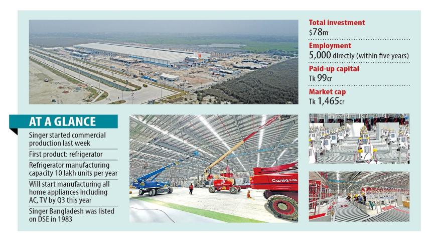 Singer Bangladesh, one of the leading manufacturers and retailers of home appliances in the country, has begun manufacturing products at its new factory, becoming the first entity to do so inside Bangladesh Special Economic Zone (BSEZ) at Araihazar in Narayanganj.