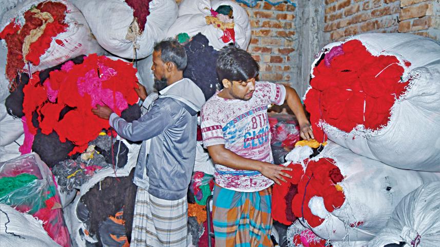 "I buy waste fabric at Tk 10-20 per kg and rejected yarn at Tk 100-300 per kg," said Nazrul Islam, another trader of Shaul Haat.