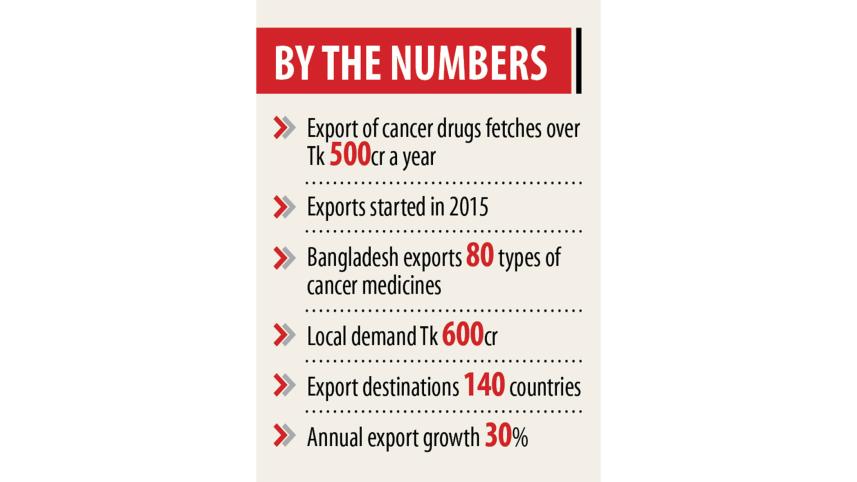 To put things into perspective, Bangladesh exported cancer drugs worth over Tk 500 crore last year, while shipment of other medications hit around Tk 656 crore.
