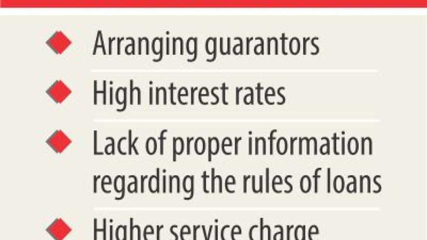 The constraints include: arranging guarantors, high interest rates, lack of proper information regarding the rules of loans, higher service charge and non-cooperation by banks.