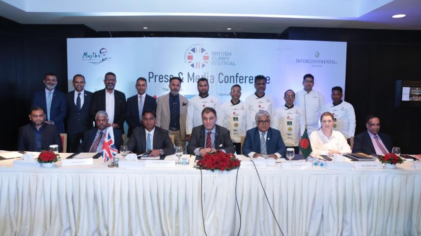The beloved British Curry Festival, which showcases the UK's favourite curry dishes alongside the best of British regional cuisine, is returning to Dhaka after a decade, as announced at a press conference held on October 19 at InterContinental Dhaka. Among those present at the press conference were Lord Karan Bilimoria, Ex-President of the British Chamber of Commerce and Industry and a life peer of the UK House of Lords; Mr Atiqur Rahaman, Managing Director, Bangladesh Services Limited; Mr Sheikh Mohammad Maroof, Additional Managing Director, City Bank; Ms Frances Jacks, Director of Communications, British High Commission; Mr Syed Belal Ahmed, Editor, Curry Life Magazine; Mr Syed Nahas Pasha, Chief Editor, Curry Life Magazine; and Mr Ashwani Nayar, General Manager, InterContinental Dhaka.