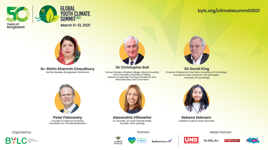 As part of its celebrations for Bangladesh's 50th anniversary of independence, Bangladesh Youth Leadership Center (BYLC) will host the inaugural Global Youth Climate Summit, in partnership with the California-based Foundation for Climate Restoration, Resilient Markets, and the Centre for Climate Repair at Cambridge, on March 11-12, 2021.