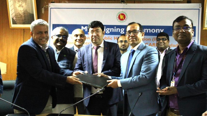 Professor Dr. Shah Golam Nabi, Director, IPHN, Professor Dr. Mijanur Rahman, Line Director, NNS and Dr. Ikhtiar Uddin Khandaker, Acting Deputy Country Director and Director-Health and Nutrition, CARE Bangladesh, signed the MoU on behalf of their respective organizations.