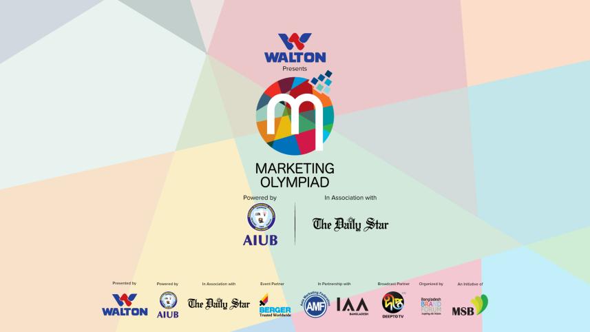 Marketing Olympiad is presented by Walton, Powered by American International University-Bangladesh, in association with The Daily Star, Event Partner Berger Paints Bangladesh Ltd., in Partnership with International Advertising Association - Bangladesh & Asia Marketing Federation & Broadcast Partner Deepto TV and an initiative of Marketing Society of Bangladesh.