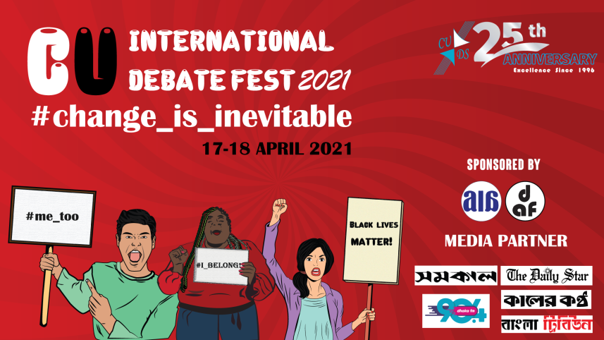 The central debating organisation of University of Chittagong, Chittagong University Debating Society (CUDS) hosted an International Debate Tournament named as "CU International Debate Fest 2021" for the first time in the history as the flagship event of CUDS. The theme for this year's debate fest was "Change is Inevitable".