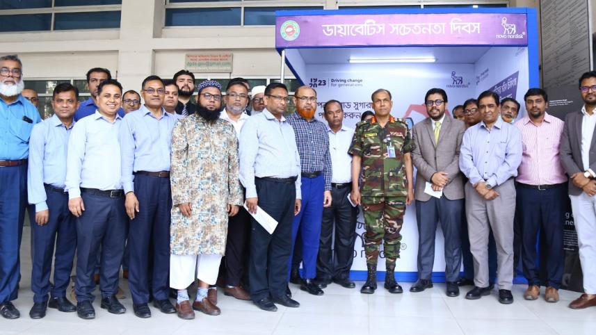 Director General Major General Mohammad Yousuf inaugurated the day-long diabetes screening programme. Along with him DGDA higher officials Md. Salahuddin, Md. Ashraf Hossain, Md. Ayub Hossain, Mohammad Mozammel Hossain, Dr Md. Akter Hossain and Md. Aziulla was also at the event.