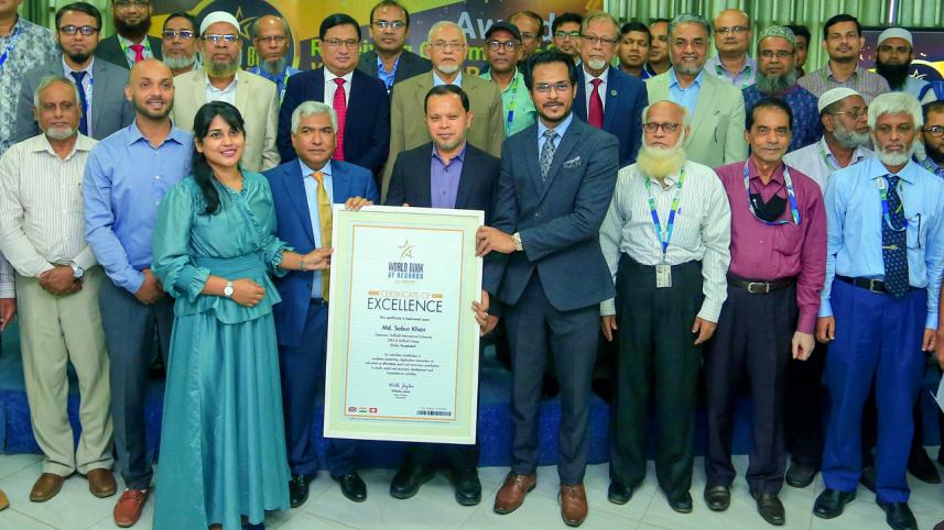 Dr Md. Sabur Khan, Chairman, Daffodil International University (DIU) and Daffodil Family received the Award of 'World Book of Records" today on October 10, 2022, for outstanding performance and contribution to the Education and ICT Sector of Bangladesh. World Book of Records is a UK-based organisation that certifies, verifies and records extraordinary achievements around the world.