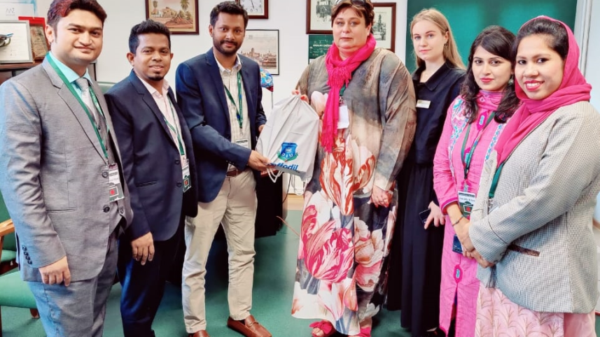 The DIU team comprised Siddiqur Rahman, associate head, BBA department; Sharif Sultana, associate head, pharmacy department; Mohammad Kamruzzaman, head, Department of Innovation and Entrepreneurship; Sunjda Khan, assistant professor, BBA department; and Md Nazmul Islam, administrative officer of the university.