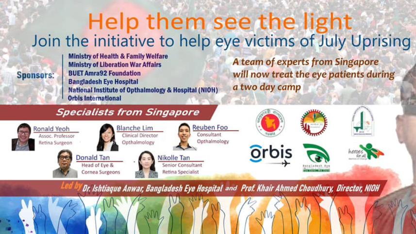 An eye camp will be held in Dhaka on February 1-2 to provide medical support to individuals who sustained eye injuries during the July uprising last year.
