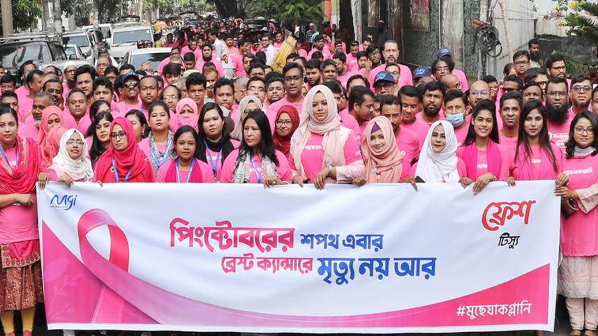 As per the data of the World Health Organization (WHO), approximately 7 thousand women die every year (approximately 19 women every day) in Bangladesh. If detected at the early stage, the survival rate from breast cancer is approximately 90%. Every year, the month of October is observed as 'Breast Cancer Awareness Month' globally, which is also referred to as 'Pinktober'. The main theme of this observance is to generate awareness and ensure the prevention of breast cancer.