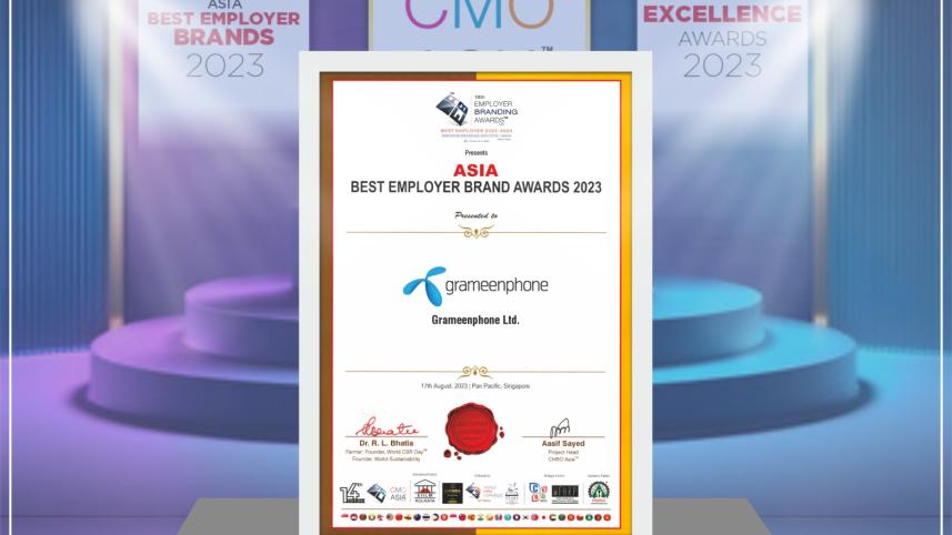 Grameenphone has won the prestigious 'Asia's Best Employer Brands 2023' award at the 18th Employer Branding Awards event, held recently at the Pan Pacific Singapore. Hosted by the Employer Branding Institute, the award aimed at recognizing the outstanding contributions by organizations with regards to talent management, talent development and talent innovation.