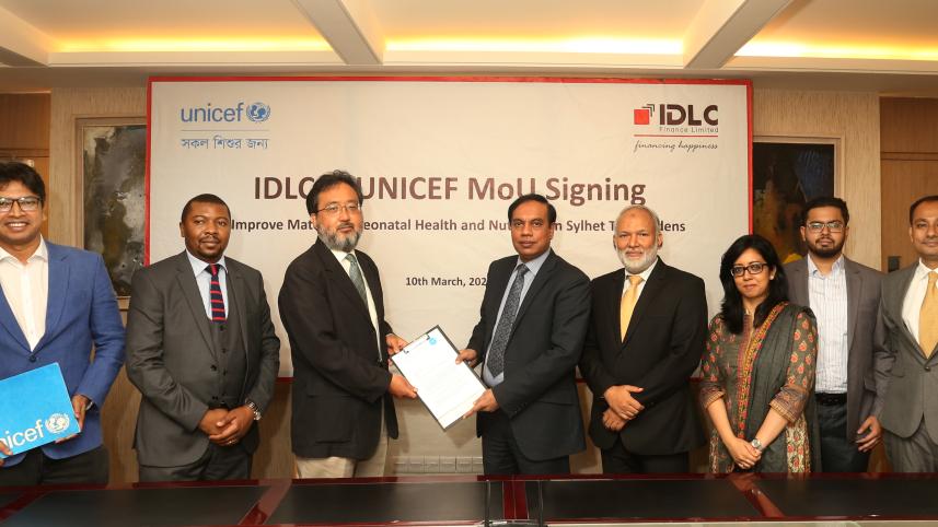 IDLC Finance Limited and United Nations Children's Fund (UNICEF) signed a memorandum of understanding on March 10th, 2021 to improve maternal, neonatal health rights and nutrition in the tea gardens of Sylhet. Under this partnership, IDLC will support renovation of the tea gardens' health facility with water and sanitation and hygiene (WASH) block and provide necessary medical equipment's and logistics in seven tea gardens. UNICEF will ensure capacity building of the tea garden health service providers with necessary training in order to connect the tea gardens' health facilities with the government system for better services and sustainability.