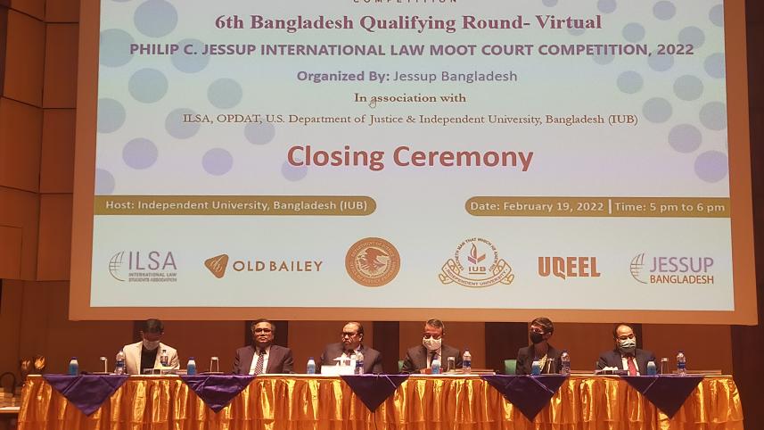 Independent University, Bangladesh (IUB) hosted the Final Round and Closing Ceremony of Sixth Bangladesh Qualifying Round Philip C. Jessup International Law Moot Court Competition on Saturday, February 19, 2022, in hybrid mode.