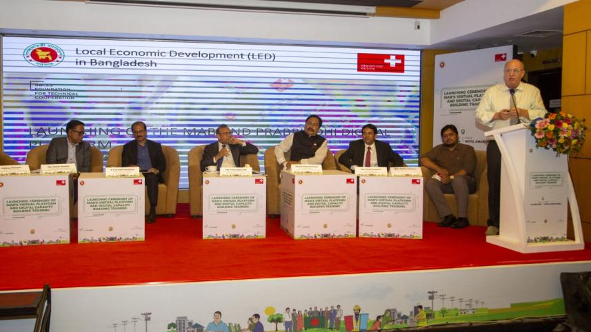 The Municipal Association of Bangladesh (MAB), in collaboration with the PRABRIDDHI - Local Economic Development (LED) project, funded by the Governments of Bangladesh and Switzerland, co-implemented by the Local Government Division (LGD) and Swisscontact, successfully launched its revamped Virtual Platform to foster local economic development and showcase the best practices for municipal development in Bangladesh. Md Tazul Islam MP, Honorable Minister, Ministry of Local Government, Rural Development & Co-operatives launched the virtual platform at Hotel Amari on 2 June 2024.