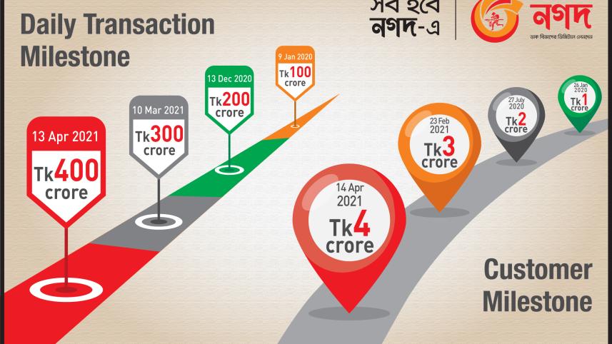Nagad, the fastest-growing mobile financial service of this kind in the world, has surpassed the 4 crore users' landmark, recently. The digital financial arm of Bangladesh postal department has gone past Tk 400 crore mark of the daily transaction.