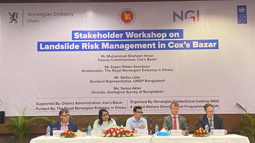Norwegian Geotechnical Institute (NGI) presented the keynote paper on localised landslide early warning and rainfall monitoring system, developed in partnership with the Geological Survey of Bangladesh (GSB) and UNDP. Arif Abdullah Khan, Programme Specialist - Disaster and Resilience, UNDP Bangladesh and Salma Aktar, Director of the Geological Survey of Bangladesh, also spoke in the workshop.