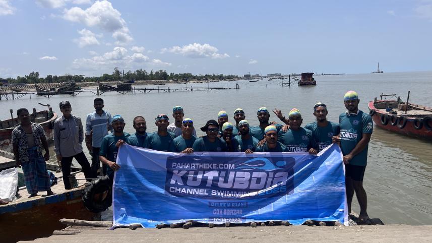 This year, the event saw the participation of 15 swimmers who undertook the challenging journey from Magnama Ghat in Pekua upazila to Barakup Ghat in Kutubdia -- a 4-kilometre swim across the Kutubdia Channel.
