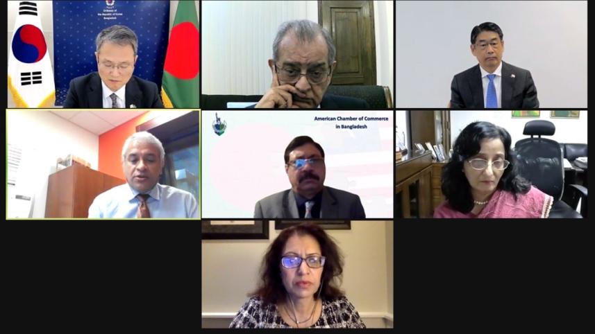 Esteemed Panelists included South Korean Ambassador Lee Jang-Keun, Japanese Ambassador ITO Naoki, President, American Chamber of Commerce (AmCham) Sayed Ershad Ahmed, Deputy Office Director, Economic Growth Team, USAID Bangladesh, U.S. Embassy Muhammad N. Khan, CEO, CSR Centre, Shahamin S. Zaman and Ministry of Foreign Affairs, Government of the People's Republic of Bangladesh Ambassador Mashfee Binte Shams, Secretary (East).