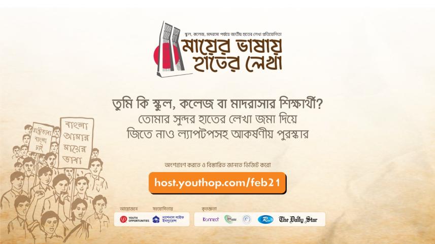 Commemorating the brave sacrifice of the language martyrs, Youth Opportunities and National Life Insurance are organising a handwriting competition titled "Mayer Bhashay Hather Lekha", a nationwide competition aimed at inspiring the future generation to express their deep appreciation for the language martyrs and their enduring impact on our society.