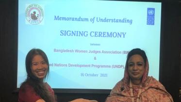 United Nations Development Programme (UNDP) has signed a Memorandum of Understanding (MoU) today (16 October 2021) in Dhaka with the Bangladesh Women Judges Association (BWJA) to address and redress violence against women (VAW) during the COVID-19 pandemic and beyond.