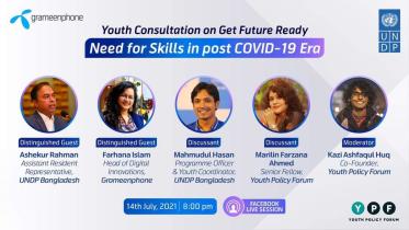 To mark the World Youth Skills Day 2021, the United Nations Development Programme (UNDP), Grameenphone Ltd and Youth Policy Forum (YPF) jointly organized a virtual consultation on the Need for Skills in post COVID era on 14 July 2021.