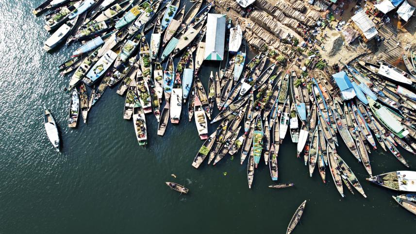Traders from around 100 villages under six unions come here on small boats or trawlers to sell their products. But they don't just offload their items at the ghat, rather, they sell from their boats too, which turns the ghat area into a floating market of sorts.
