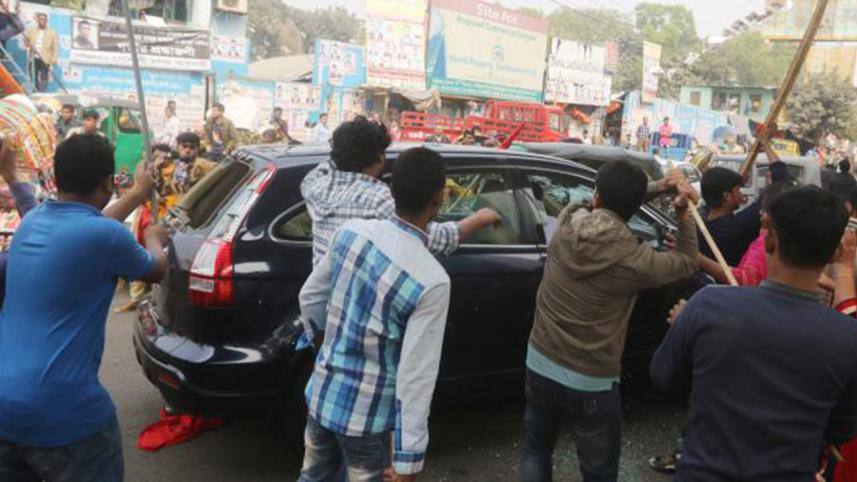Three people are injured in a clash between garment workers and BGMEA employees in Karwan Bazar of Dhaka on January 31, 2018. Photo: Prothom Alo
