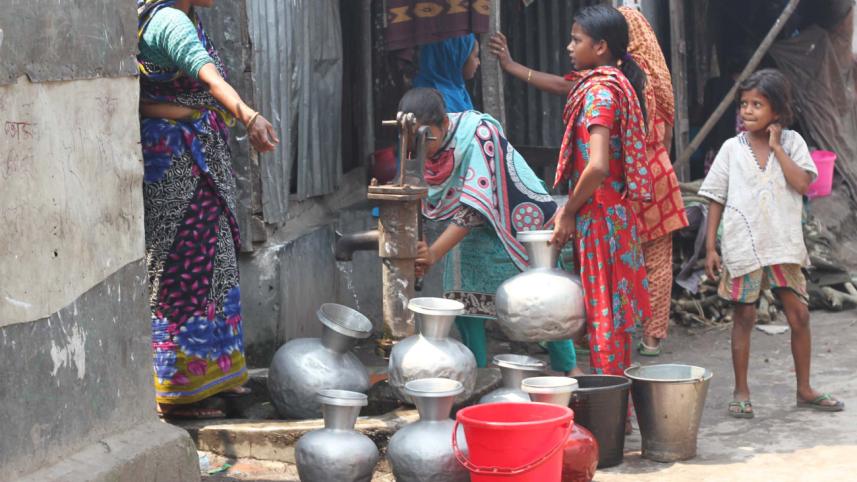"Besides morning, there is no water from the tubewells. We have to stand in line for long hours to get water," said a frustrated Arati Majumder of Kaunia Club Road area.
