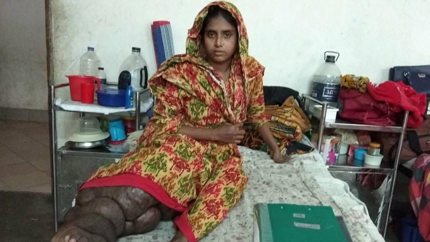 Fifth in the line of nine siblings from a poor family, 22-year-old Jesmine Akhter has been suffering from a massive swollen leg, a possible case of elephantiasis, for a long time.