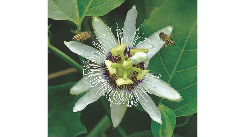 Pretty blossoms come from unexpected fruits. Passionfruit, also known as tang fruit, is an easily grown, prolific creeper that does well in shady balconies. Its blossom has an intricate beauty. The fruit itself is flavourful and delightfully sour. You can find seedlings at the annual brikkho mela.