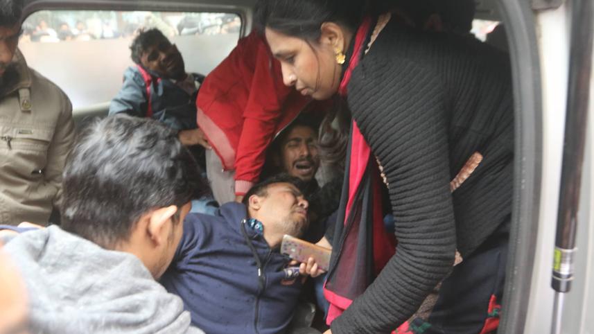 On Sunday, activists of a faction of Muktijuddho Moncho, mostly comprised of Chhatra League men, beat up and injured Nur, storming into his office at the Dhaka University Central Students' Union (Ducsu) building.