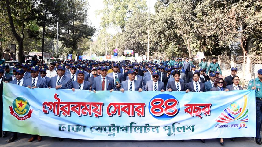 Earlier, officials of DMP brought out a raising day procession from DMP headquarters premises which ended at Rajarbagh Police Lines.