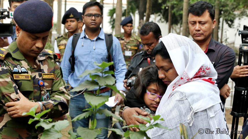 “No one will forget this day. Fifty seven army officers were martyred. I hope the day is valued with due respect,” said Lucky Sarwar, sister of Maj Kazi Mosaddek Hossain who is among the army person killed during the mutiny. Lucky went to the graveyard with Mosaddek’s daughter Laika to pay their homage.