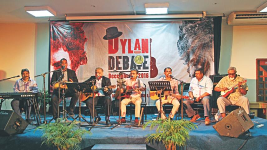 Debaters professors Syed Manzoorul Islam, Firdous Azim and Hasan Al Zayed, who teamed up for defending the motion raised the questions of Dylan's relevance at present time and about the aesthetic values of his songs.