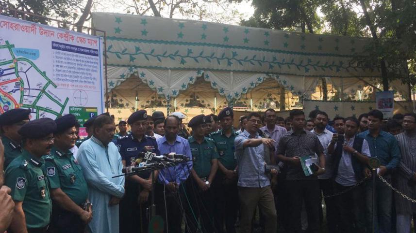 Inspector General of Police (IGP) Javed Patwary, DMP Commissioner Asaduzzaman Mia, Counter Terrorism and Transnational Crime unit (CTTC) chief Monirul Islam were also present at his side.