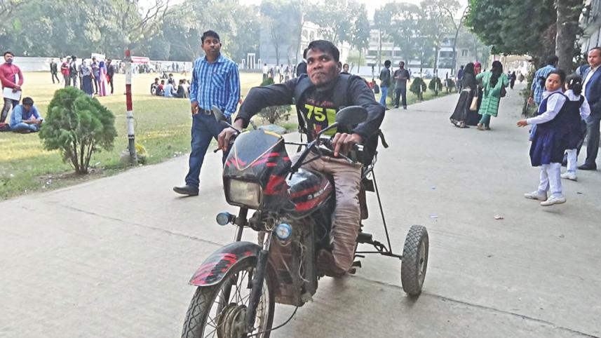 The university authorities soon took notice that he aced his coursework; commuting every day by a wheelchair and living at a nearby dormitory for rickshaw pullers and labourers.