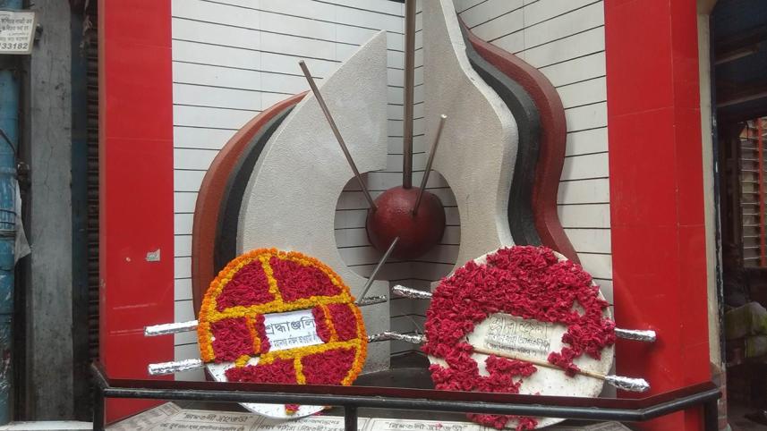 Only two wreaths of flowers, from which some flowers were torn, were seen lying on the memorial built there, reports our staff correspondent.