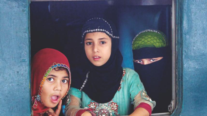 During festival times, particularly the two Eids, the station offers an additional attraction for me and other photographers. Many people – particularly children – dress up in colourful new clothes. Toddlers often wear bright shoes and sunglasses. Many women and girls adorn their hands and arms with henna patterns. Anticipating a fun vacation in their village home, everyone is in a good mood.