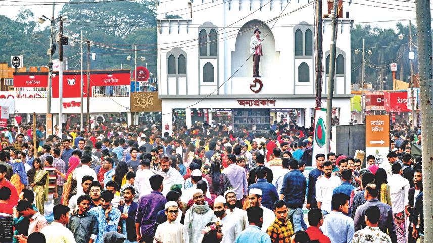 Meanwhile, the fair grounds at Bangla Academy and adjoining Suhrawrady Uddyan saw a huge gathering of booklovers yesterday.