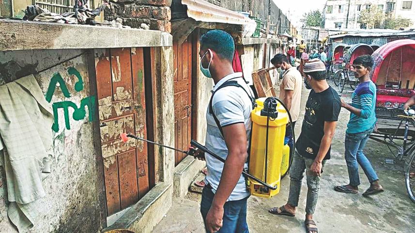 Other than them, at least 50 other youths were seen disinfecting streets and vehicles across Bakalia, Rahattarpul, Chawkbazar and Boro Mia Mosjid areas by spraying similar kinds of chemical solutions.