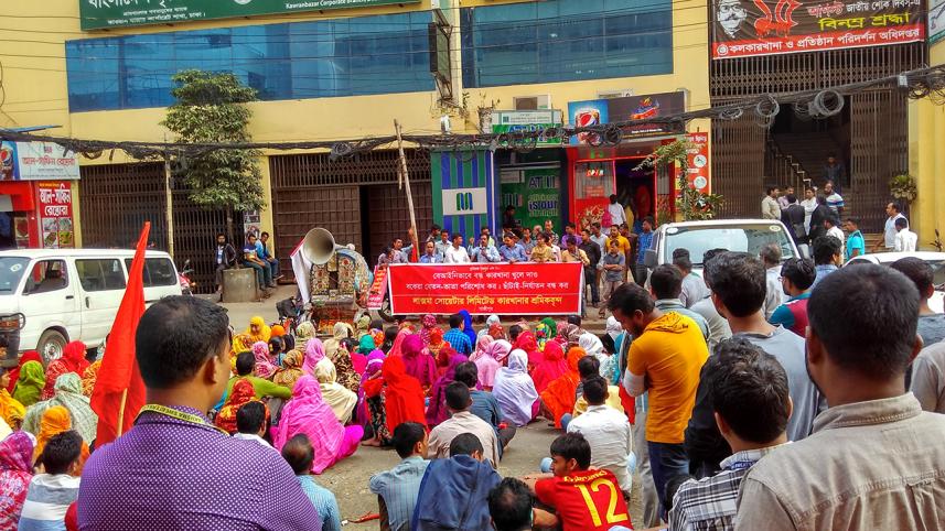 RMG workers stage demo at Karwan Bazar protesting factory closure