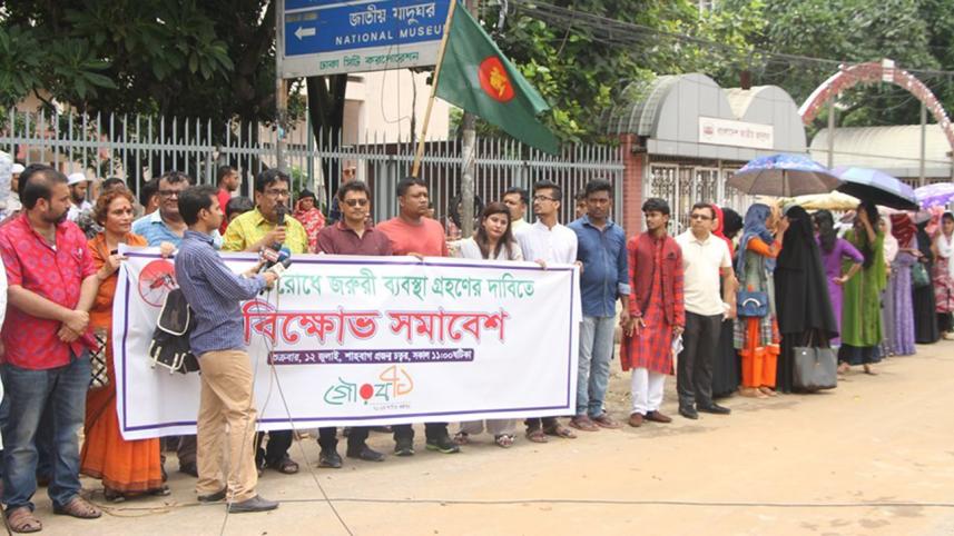 Gourab’71, a platform of cultural and social activists, organised the human chain in front of the National Museum at the capital’s Shahbagh intersection.
