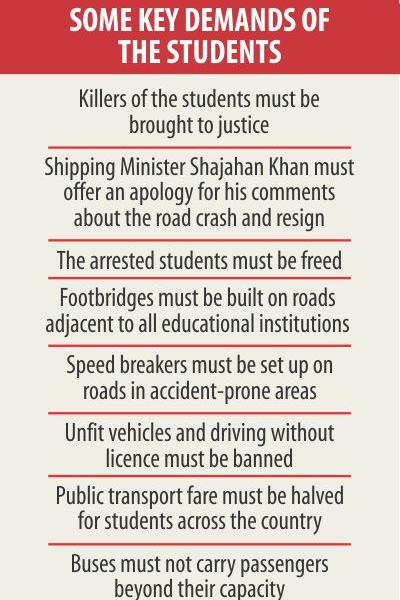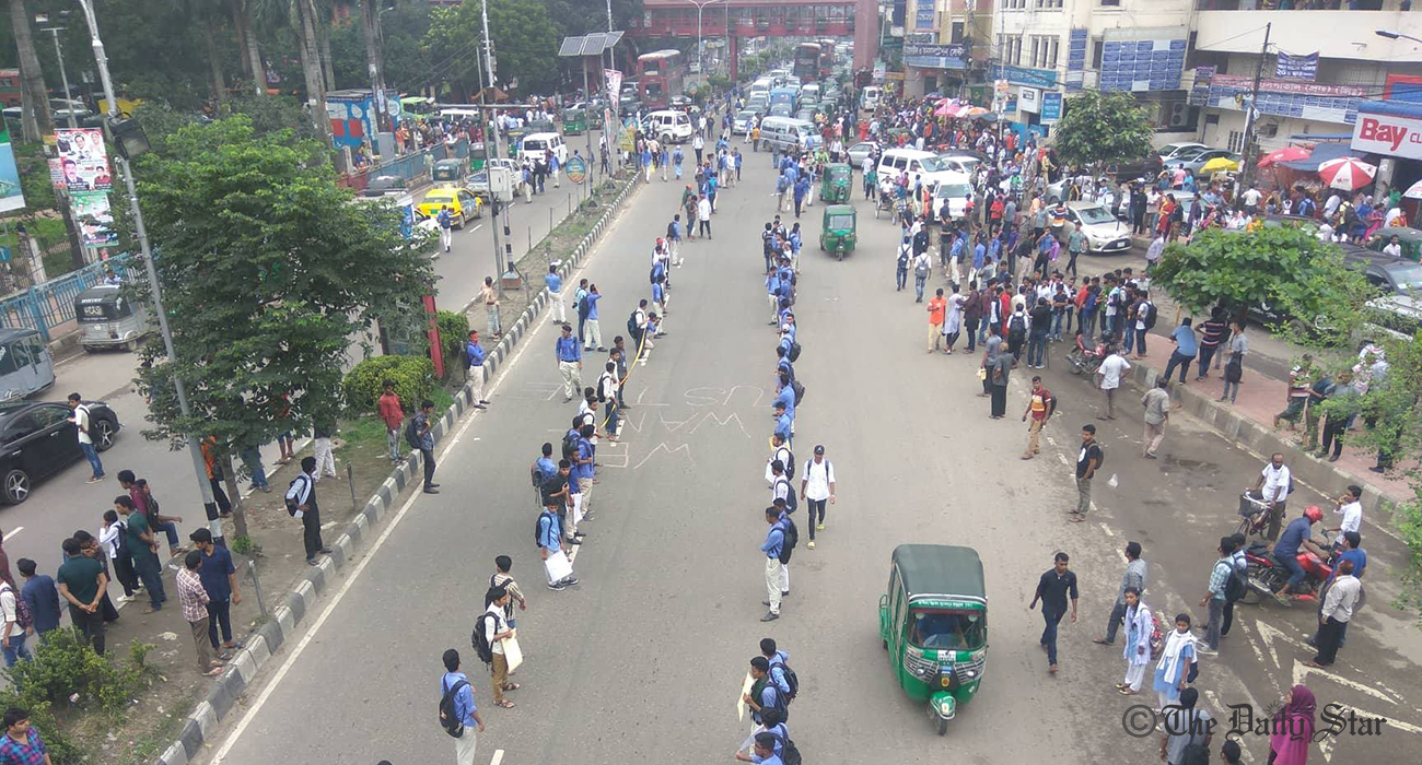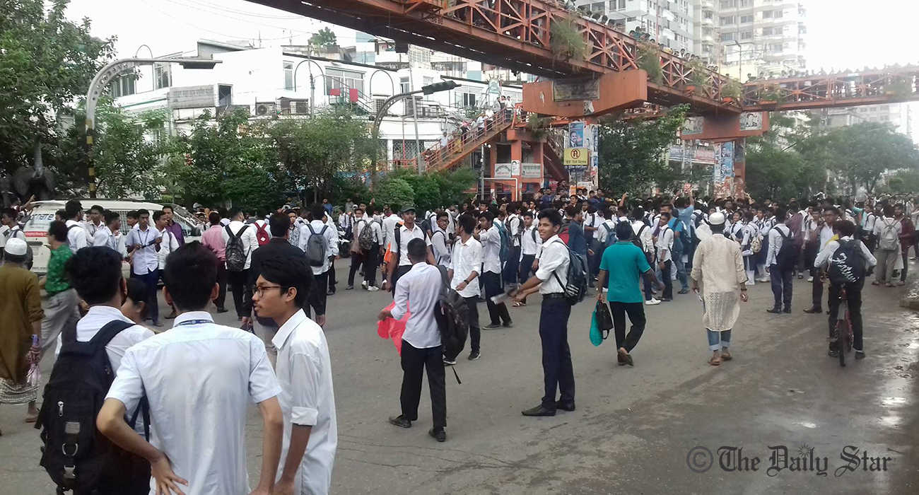 Students of different schools and colleges started their demonstration demanding safe roads following the death of two college students in a road crash in the capital's Kurmitola area on July 29.