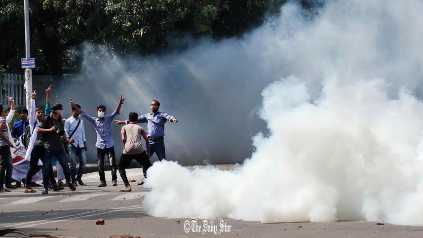 At least 15 police officials including two female officers took treatment at Dhaka Medical College Hospital (DMCH) complaining of sickness from the tear gas fumes, according to DMCH sources.